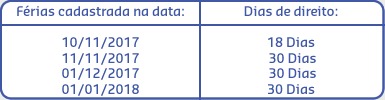 Observe que para determinar a quantidade de dias de direito, a data de início do gozo das férias é considerada.