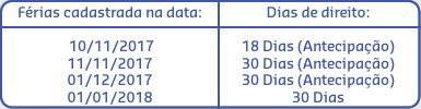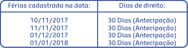 Período Aquisitivo: 01/01/2017 – 31/12/2017