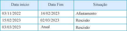 Porém, antes de finalizar seu afastamento ele solicitou no dia 15/02/2023 o encerramento do contrato. Ao cadastrar a rescisão do colaborador o sistema atualizou os históricos dos contratos conforme a vigência das ocorrências.