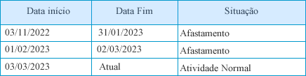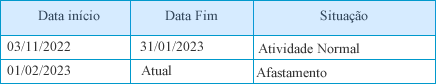 Período de Afastamento: 03/11/2022 a 02/03/2023