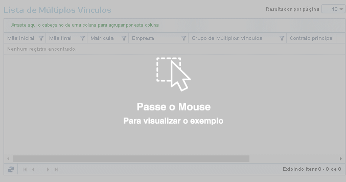 Na lista de múltiplos vínculos são apresentados os vínculos já cadastrados no sistema, sendo possível realizar operações, como: ordenações, filtros e agrupamentos. Para saber mais clique aqui.