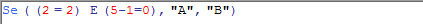 O resultado da fórmula acima é B, porque dois é igual a dois, mas cinco menos um não é igual a zero, por isso o resultado da função será falso, que neste exemplo é B.