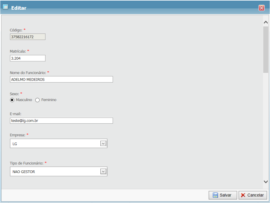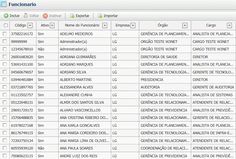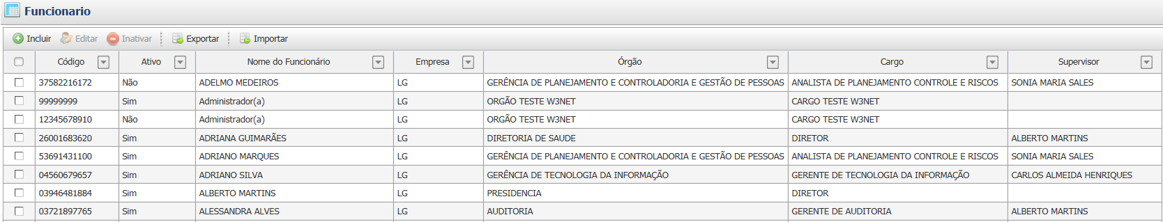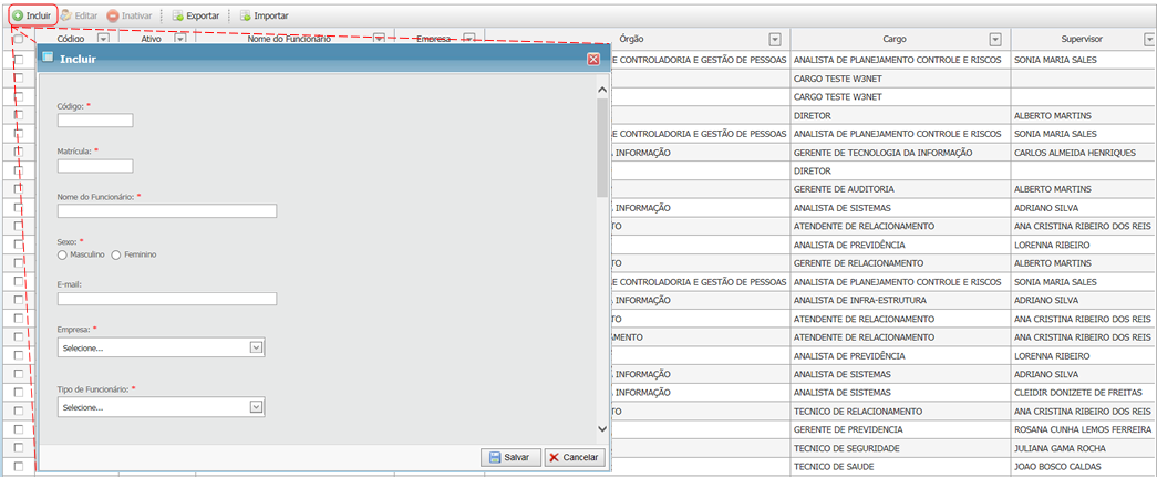 Através desta funcionalidade, é possível realizar a criação e configuração dos funcionários que farão parte da base de dados do cliente.