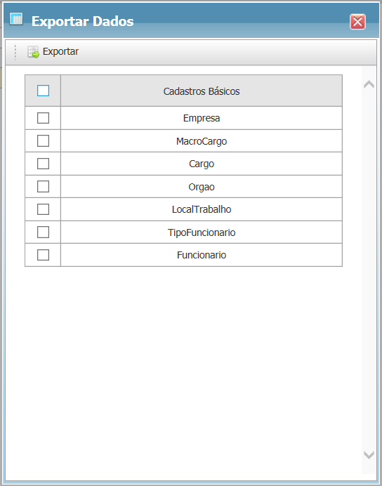O sistema permite realizar a exportação de um ou mais campos, selecione o tipo de cadastro