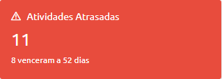 Atividades Atrasadas: exibe a quantidade de atividades atrasadas, quantas atividades venceram e o número de dias.