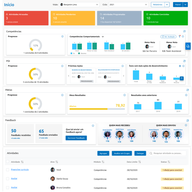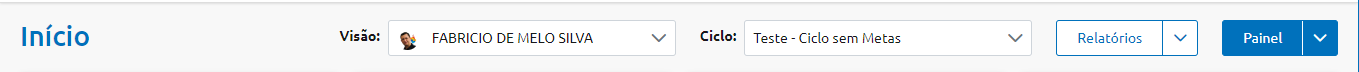 Com a configuração do Cadastro de Ciclos Integrados, as informações da home irão aparecer conforme os ciclos de Competência, PDI e Metas.