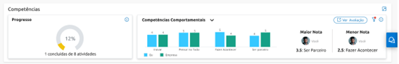 Na opção Progresso, o usuário poderá fazer o acompanhamento do progresso de conclusão de atividade de avaliação de Competência. Será exibido por meio de porcentagem.