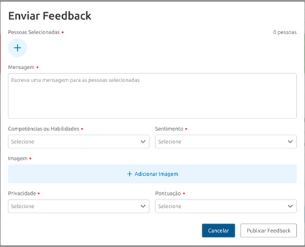 aberta a tela Novo Feedback, onde o colaborador poderá enviar