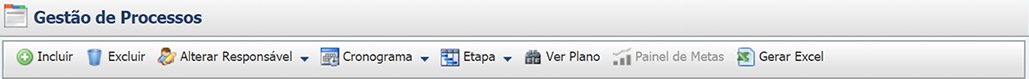 Por meio da Gestão de Processos é possível Incluir e Excluir contratos que foram cadastrados em Configurações do Cilos - processos, Alterar Responsáveis, realizar alterações no Cronograma individual ou do processo, liberar Etapa e realizar atividades em nome de outrem, visualizar o Plano de Metas de determinado colaborador e acompanhar o seu Painel de Metas, sendo possível também Gerar Excel.