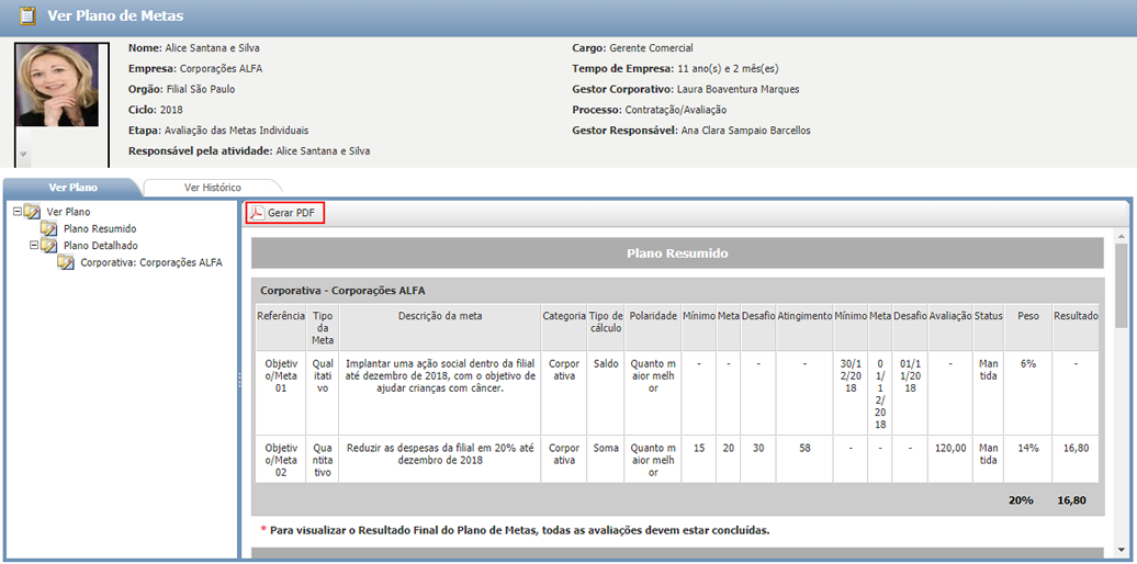 visualize os planos desenvolvidos por cada colaborador acessando o histório de seus planos resumidos e