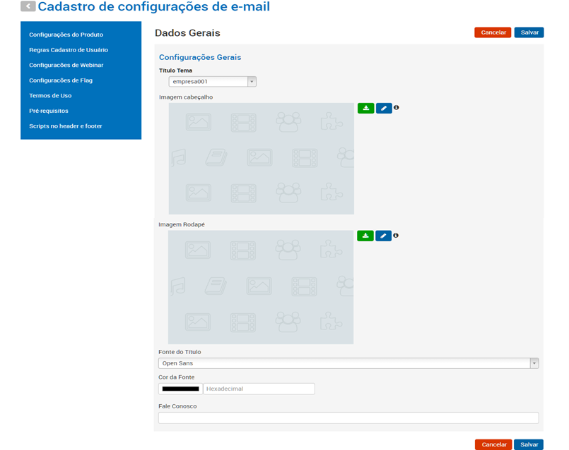 acessar e editar os atributos por Tema dos e-mails na plataforma, como: Imagem de Cabeçalho, Imagem do Rodapé,