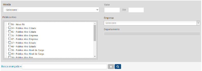 Nessa listagem, é possível realizar uma pesquisa que permite trazer informações pelos filtos abaixo: