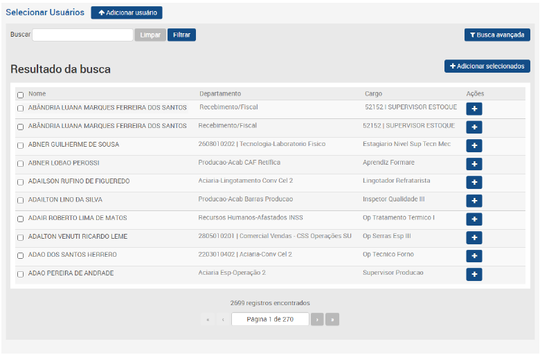 poderão ser acessados e através de uma tela, o Administrador poderá selecionar quais usuários