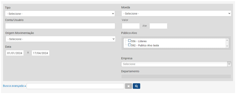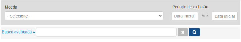 A consulta do histórico de movimentações de moedas permitirá a realização dos seguintes filtros: